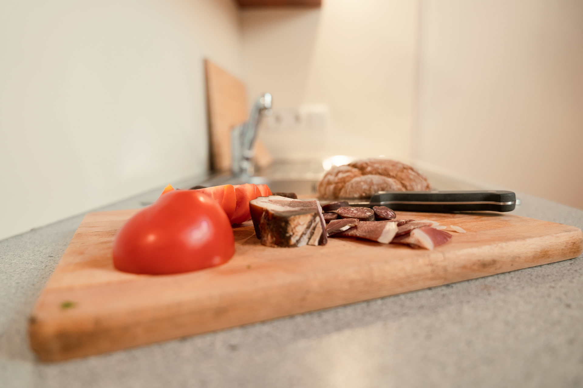 Die beiden wohnlichen und geräumigen Appartments „Himbeere“ und „Erdbeere“ bestehen aus einer Wohnküche mit Küchenblock, der mit sämtlichen Küchengeräten bis hin zur Geschirrspülmaschine ausgestattet ist. Hinzu kommen eine Ess- sowie eine Sitzecke mit Fernsehgerät.